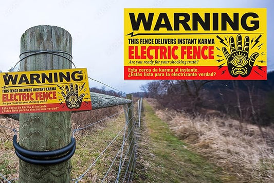 Why settle for boring “Danger” signs when your fence can roast people, ruin their confidence, and still keep them out? Our Funny Electric Fence Signs turn farm safety into farm comedy. Each one packs bold colors, brutal honesty, and a little too much personality—whether it’s a cranky fence with a bad attitude, a skeleton showing what happens when you climb, or livestock on a high-protein diet (spoiler: you’re the protein).