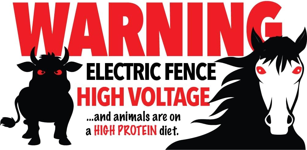 ★ Message: “WARNING – ELECTRIC FENCE – HIGH VOLTAGE …and animals are on a HIGH PROTEIN diet”